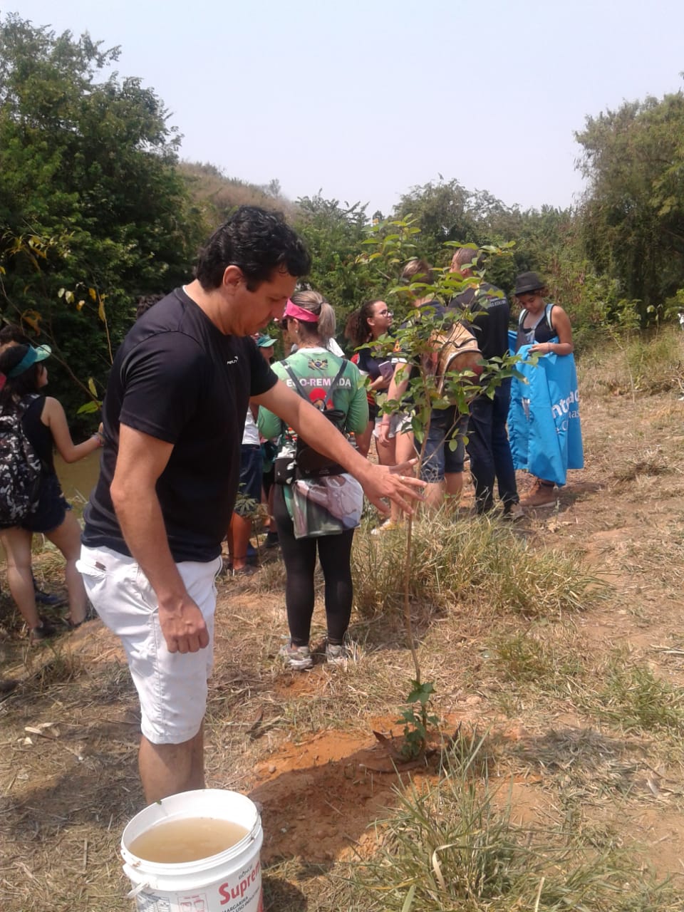Em menos de três horas de trabalhos, seis grandes sacos de lixo foram recolhidos das margens do Meia Pataca. Em seguida foi realizado o plantio de 25 mudas de ipê.